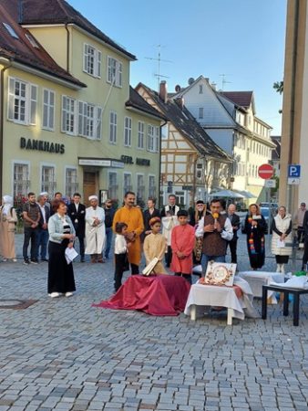 Stellvertretende unterschiedlicher Religionen und Glaubensgemeinschaften bringen dazu Lebensmittel mit und deuten ihre Symbolik aus dem Blickwinkel ihres Glaubens. Mitwirkende sind die christlichen Kirchen,die alevitische Gemeinde,die Ditib-Moscheegemeinde,die israelitische Religionsgemeinschaft in Württemberg (IRGW) und die Hindu-Gemeinde in Göppingen. In aller Verschiedenheit soll die Vielfalt des Glaubens mit Worten und Gebeten gefeiert werden. Musikalisch umrahmt wird die Feier von Grundschulkindern der Pestalozzischule,Südstadt-Schule,Uhland-Grundschule und dem Reusch-Kinderchor in Kooperation mit der Janusz-Korczak-Schule unter der Leitung von Kirchenmusikdirektor Gerald Buß.