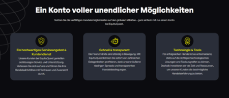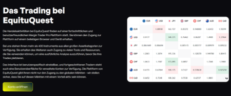 Egal,ob man gerade erst mit dem Handel beginnt oder bereits ein erfahrener Profi ist,EquituQuest verspricht eine Plattform,die sowohl einfach zu bedienen als auch leistungsstark genug ist,um den Anforderungen anspruchsvoller Trader gerecht zu werden.