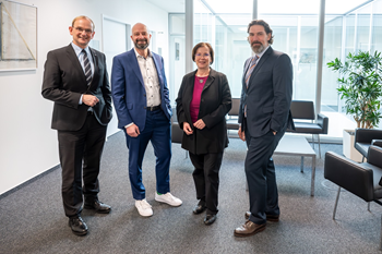 Foto(IHK-Bezirkskammer Göppingen,G. Carlucci): Gernot Imgart (Leitender IHK-Geschäftsführer),Oliver Heer (2. Vizepräsident),Edith Strassacker (Präsidentin),Sven Maier (1. Vizepräsident)