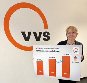 Im Jahr 2024 wurden im VVS insgesamt knapp 375 Millionen Fahrten mit Bussen und Bahnen unternommen – 9,1 Prozent mehr als 2023. Das Deutschland-Ticket hat damit dazu geführt,dass die Fahrgastzahlen auf dem Niveau von vor Corona sind. Dazu hat auch das neue D-Ticket JugendBW beigetragen,das seit einem Jahr in ganz Deutschland gilt.