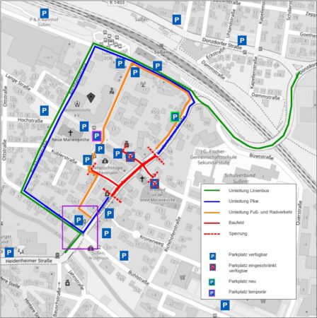 Baubereich und VerkehrsführungDer zweite Bauabschnitt erstreckt sich vom bisherigen Bauende auf Höhe des Gebäudes Heidenheimer Straße 79 bis zur Papeterie Kelsch. Auch die Küblerstraße und die Lange Straße werden teilweise mitausgebaut. Um die Belastung für Anwohner und Gewerbetreibende so gering wie möglich zu halten,wird der 2. Bauabschnitt nochmals in zwei Unterabschnitte unterteilt.Die Sperrung während des 2. Bauabschnitts betrifft den Bereich zwischen dem neuen Mini-Kreisverkehr an der Bahnbrücke und der Kreissparkasse. Für Anwohner,Kunden und Patienten der ansässigen Geschäfte und Arztpraxen bleiben die Zufahrten bis zur Baustelle dennoch befahrbar.Die Umleitung für den innerörtlichen Verkehr und den Busverkehr erfolgt über die Rechbergstraße und die Filsstraße.Vorarbeiten: Glasfaser-VerlegungVor dem eigentlichen Baubeginn muss zunächst ein Glasfaserkabel (LWL) umverlegt werden. Diese Arbeiten erstrecken sich vom jetzigen Bauende bis in die Bühlstraße und erfordern das Anlegen eines schmalen Grabens. Diese Arbeiten werden so zügig wie möglich durchgeführt,um Einschränkungen für die Anlieger zu minimieren.Geplante Sperrung ab Mitte MärzDie Sperrung wird voraussichtlich Mitte nächster Woche oder zu Beginn der darauffolgenden Woche (ab dem 17. März 2025) eingerichtet. Die Stadt Süßen hat bewusst den Beginn der Maßnahme zeitlich an die Öffnung der Löwenkreuzung angepasst. Die Sperrung der alten B10 an der Löwenkreuzung soll nach aktuellem Stand am Freitag,7. März 2025 im Laufe des Tages aufgehoben werden.Die Stadt Süßen bedankt sich bei allen Anwohnerinnen und Anwohnern sowie Gewerbetreibenden für ihr Verständnis und ihre Geduld während der Bauphase. Ziel ist es,die Aufenthaltsqualität in der Innenstadt nachhaltig zu verbessern und eine moderne Infrastruktur zu schaffen.PM Stadtverwaltung Süßen
