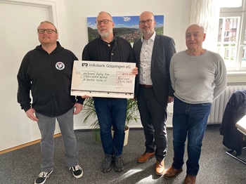 Die feierliche Übergabe des Spendenschecks fand im Büro des Geislinger Oberbürgermeisters statt. Jürgen Klaus und Manfred Heinschke vom Vereinsvorstand des Liederkranz Weiler sowie Tobias Messerschmidt