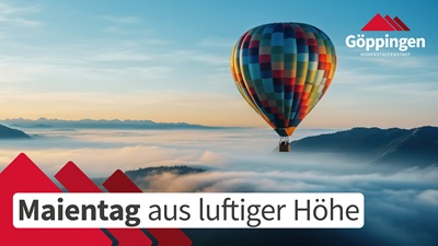 Den Göppinger Maientag kann man in diesem Jahr zum ersten Mal aus einer ganz anderen Perspektive erleben – mit einer Heißluftballonfahrt in den Sonnenuntergang. Schon jetzt kann man sich die heiß begehrten Tickets sichern und in der Zeit von Freitag,30. Mai,bis Montag,2. Juni,jeweils um 19 Uhr,abheben.