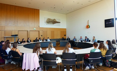 Oberbürgermeister Klaus Heininger empfängt Schülerinnen aus der französischen Partnerstadt Oyonnax. Ein herzlicher Empfang im Rathaus markierte den Auftakt des diesjährigen Schüleraustausches zwischen dem Erich Kästner Gymnasium und dem Collège St. Joseph aus der französischen Partnerstadt Oyonnax.