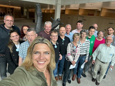 Nach einer fachkundigen Führung durch den Besucherdienst des Landtags durfte die Gruppe auf der Besuchertribüne des Plenarsaals eine Plenardebatte zur Förderung von Biogasanlagen mitverfolgen. Die Herausforderungen rund um den Ausbau erneuerbarer Energien stellten auch einen Schwerpunkt des sich anschließenden Abgeordnetengesprächs mit Sarah Schweizer dar. Abgerundet wurde der Besuch von einem gemeinsamen Mittagessen im Landtagsrestaurant Plenum auf Einladung der Abgeordneten.