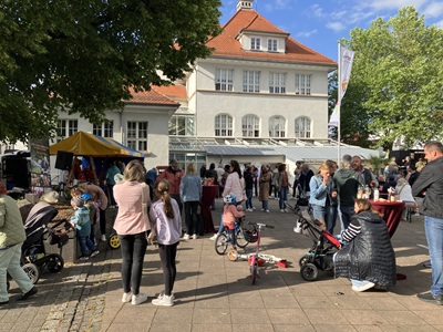 Mit Aperol Sprizz und ausgesuchten Weinen war der Getränkestand bald umlagert und man genoss mit einem Gläschen in der Hand den,wenn auch noch kühlen,so doch sonnigen Spätnachmittag in den Abend hinein. Mit Würsten und Käsebrötchen,sowie Getränken aller Art,war für Jung und Alt was geboten. Popcorn und Kreidemalen erwies sich als Renner für die Kinder. Überhaupt schön,daß viele junge Familien da waren. Gegen später schauten auch MdL Sascha Binder und Regionalrat Dr. Klaus Spachmann vorbei.