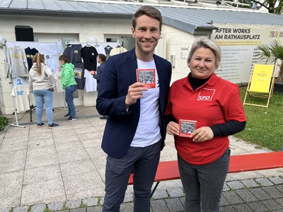 Und die redaktionelle Arbeit wie der pfiffige Ausgangs-Gedanke ist bei Vorstandsmitglied Hümeyra Mrazic in besten Händen gewesen. Sie übergab am Rande des Festes BM Dennis Eberle das erste Exemplar. Und viele Gäste bedienten sich danach ebenfalls mit Interesse und Lob. Im Faltblatt sind fünf Orts-Spaziergänge beschrieben,welche das historische Salach nachzeichnen. In den kommenden Monaten wird die SPD zu diesen Ortsspaziergängen mit Informationen und Anekdoten alle Bürgerinnen und Bürger an vier frühen Abenden einladen.