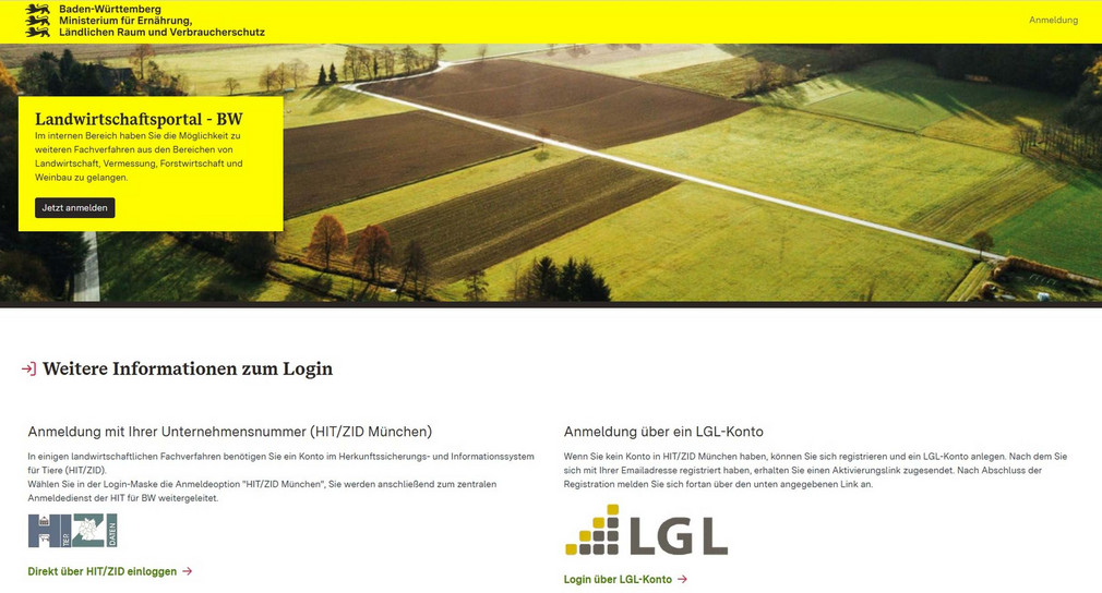 Das Ministerium für Ländlichen Raum und Verbraucherschutz (MLR) veröffentlicht ein neues,zentrales Landwirtschaftsportal,das den Zugang zu Fachverfahren wesentlich vereinfacht. Ab Juni 2025 erhalten Antragsteller über das Extern:„Landwirtschaftsportal BW“(Öffnet in neuem Fenster) einen gebündelten Zugang zu verschiedenen digitalen Fachanwendungen der Agrarverwaltung Baden-Württembergs,wie zum Beispiel den Extern:FIONA-Onlineantrag(Öffnet in neuem Fenster) oder das Antragstellerpostfach.