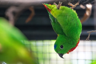 Foto (© Wilhelma Stuttgart/Birger Meierjohann): Papageien können klein und bunt sein wie das Blaukrönchen („Fledermauspapagei“).