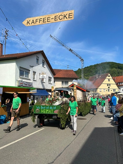 Bereits am Vormittag startete der Festtag mit einem Umzug durch Unterböhringen. Insgesamt 23 Gruppen beteiligten sich daran,darunter neun Festwägen,die mit viel Aufwand gestaltet wurden und als Gast der Fanfarenzug der Geislinger Feuerwehr. Ergänzt wurde der Umzug durch zahlreiche Fußgruppen,die mit Verkleidungen,verschiedenen Themen und aufwändiger Gestaltung zum bunten Bild beitrugen. Auch alle Kindergärten und Schulen aus der Gemeinde Bad Überkingen waren beteiligt.