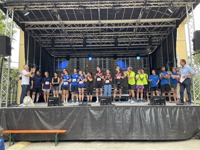 Neben der sportlichen Leistung,stand dabei die gemeinschaftliche Freude am Sport im Vordergrund. Der Ehrgeiz der Läuferinnen und Läufer war aber deutlich zu erkennen und zeigte sich an den schnellen Laufzeiten. Selbst die jüngsten Teilnehmerinnen und Teilnehmer in der Altersgruppe Jahrgang 2016 und jünger sprinteten nach der Staffelstabübergabe los und erzielten so für die Gruppe „Silcherschule Pepe 2“ eine Bestzeit von 12:10. „Sehr beeindruckend,wie vor allem ihr jungen Läuferinnen und Läufer voller Motivation losgerannt seid. Die Strecke hatte es in sich und ihr habt die Läufe ganz toll gemeistert“; richtete sich Oberbürgermeister Klaus Heininger an die jüngsten Teilnehmerinnen und Teilnehmer,bei denen die Freude und der Stolz an den Gesichtern abzulesen war.