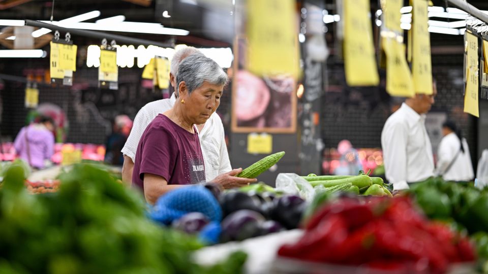 Menschen betrachten die Waren in einem Supermarkt in Nanjing