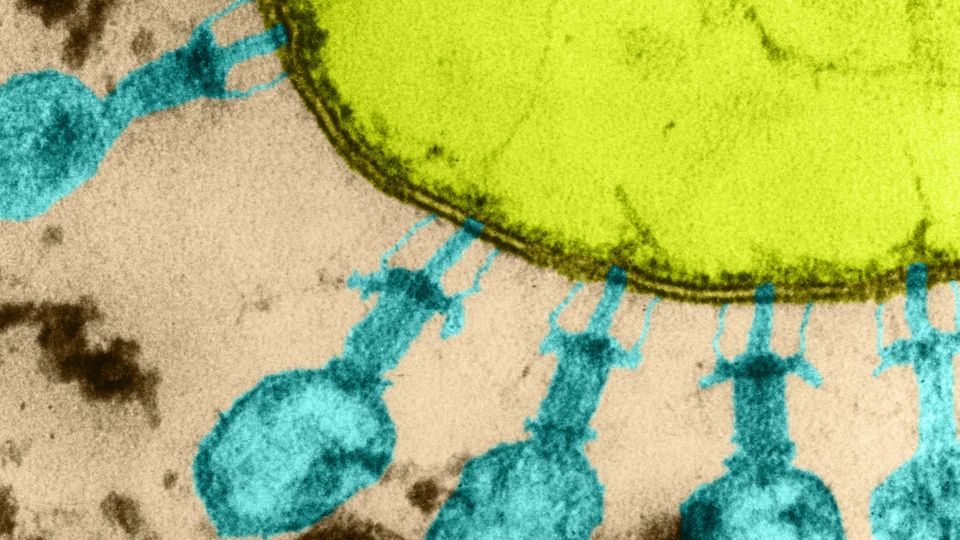 Bakteriophagen an einem Kolibakterium: Die ersten »Computerviren« dieser Art