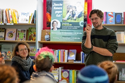Die Lesung von Gerd Bayer aus seinem Buch „Tausche Kamera gegen Kuh“ stieß auf großes Interesse: Sämtliche Sitzplätze in der Barbarossa-Buchhandlung waren belegt,viele Gäste suchten im Anschluss noch das persönliche Gespräch mit dem Autor.