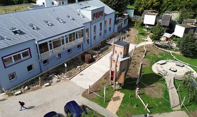 Foto (DJH Landesverband BW): Der große Außenbereich der Jugendherberge hat sich in den vergangenen Monaten zu einem vielseitigen öffentlichen Erlebnis-,Spiel- und Naturerfahrungsraum entwickelt.