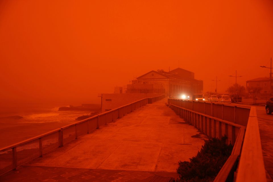 Belastung der Luft Saharastaub färbt Himmel über Kreta blutrot